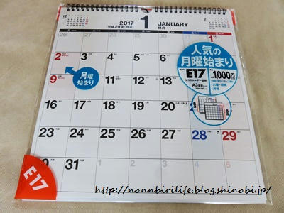 2017年のカレンダー 月曜日始まりのこれに決めた